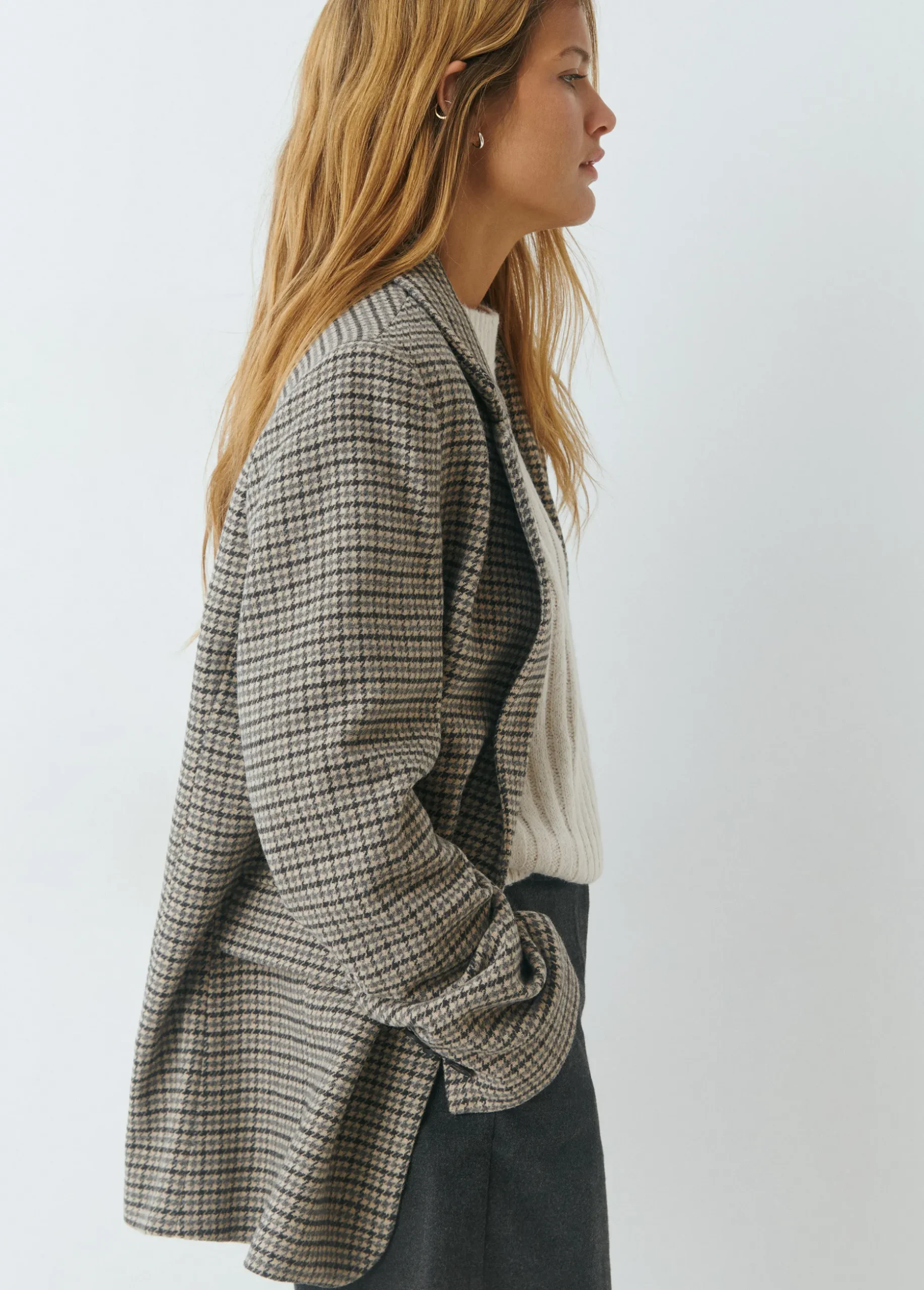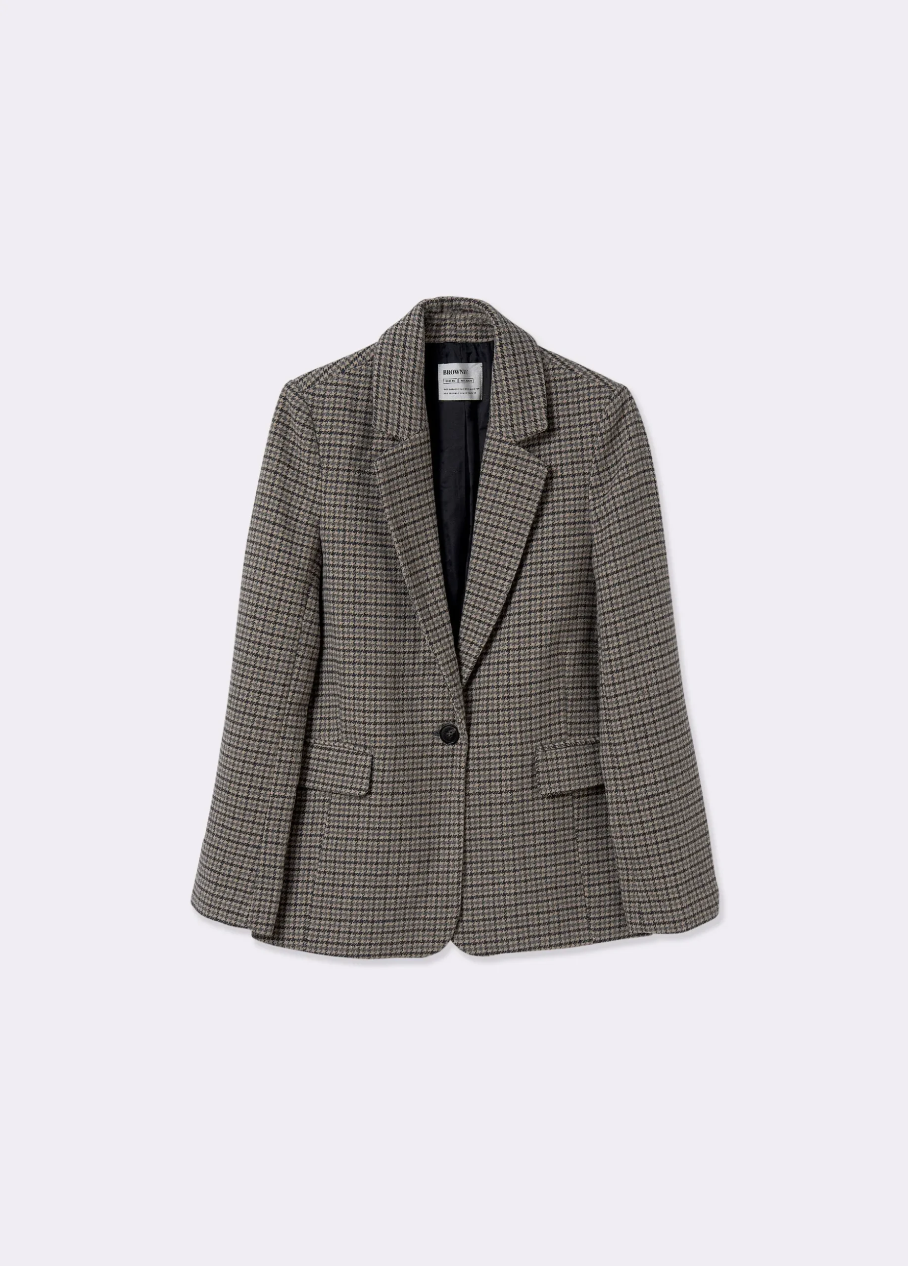 Americana estampado de pata de gallo con solapas, bolsillos y cierre mediante botón en el frontal.