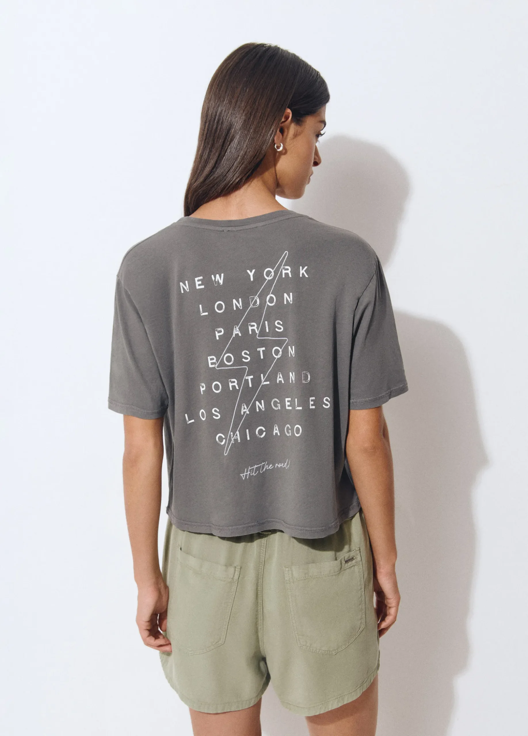 Camiseta de manga corta, cuello redondo y mensaje en el frontal y en la espalda.