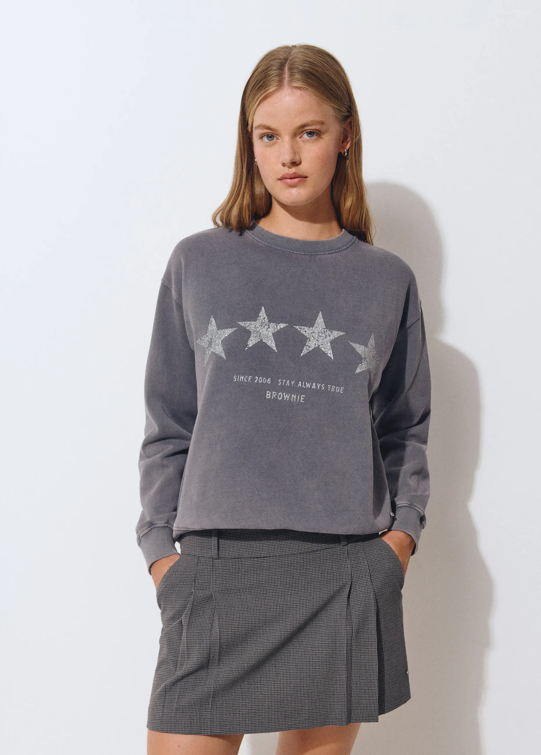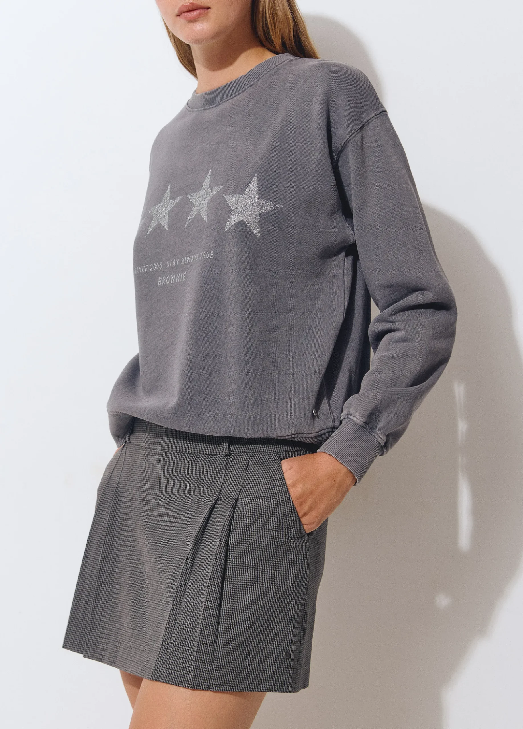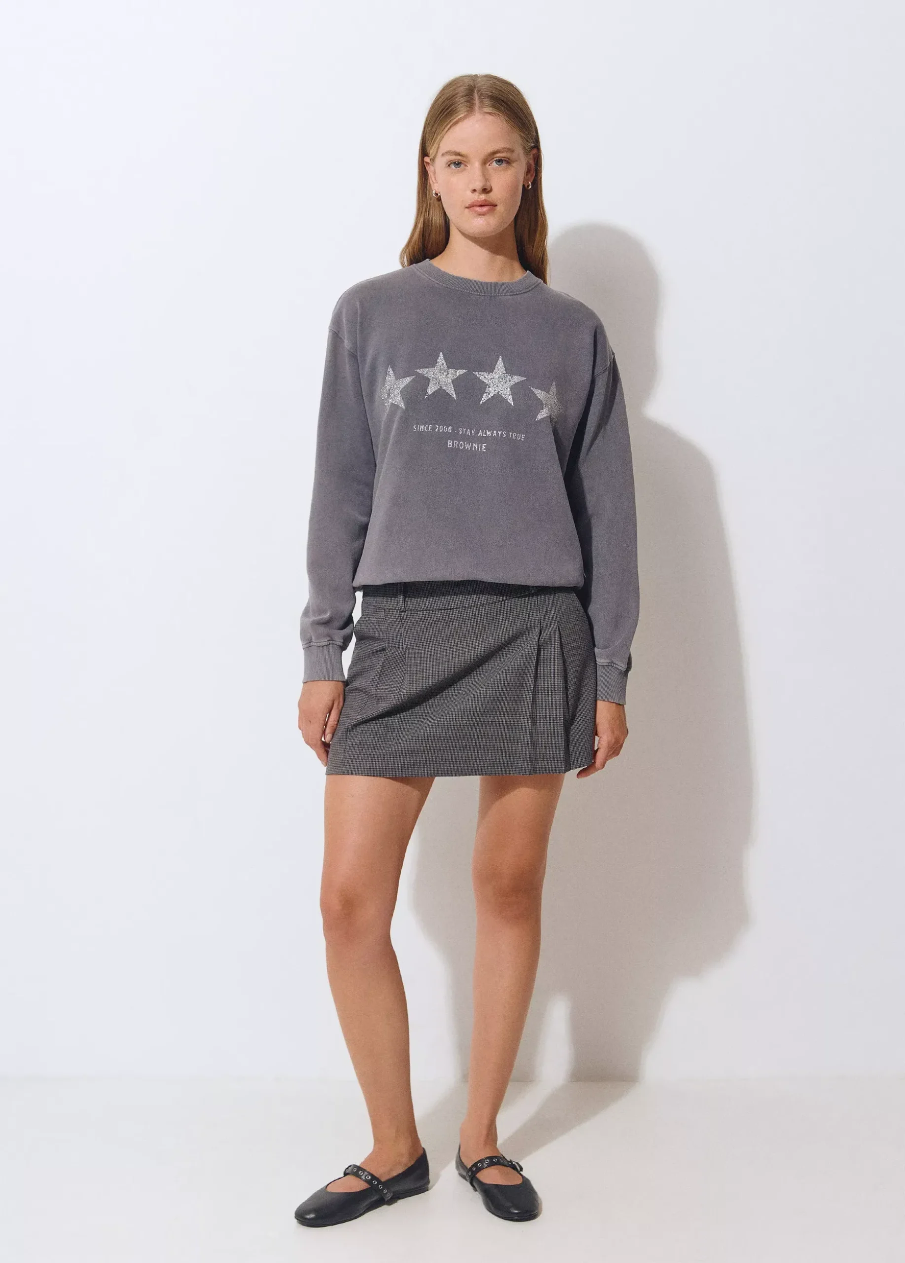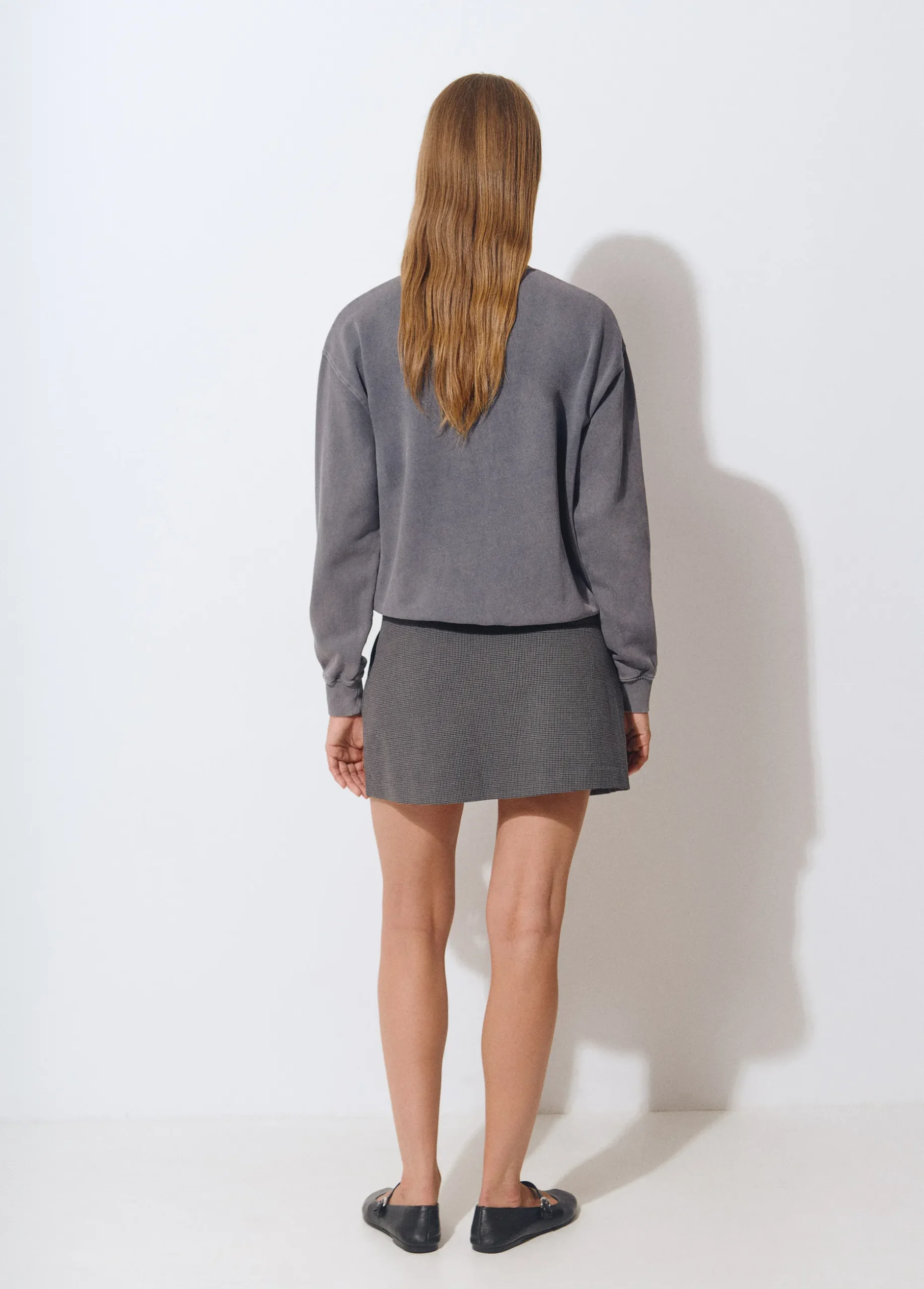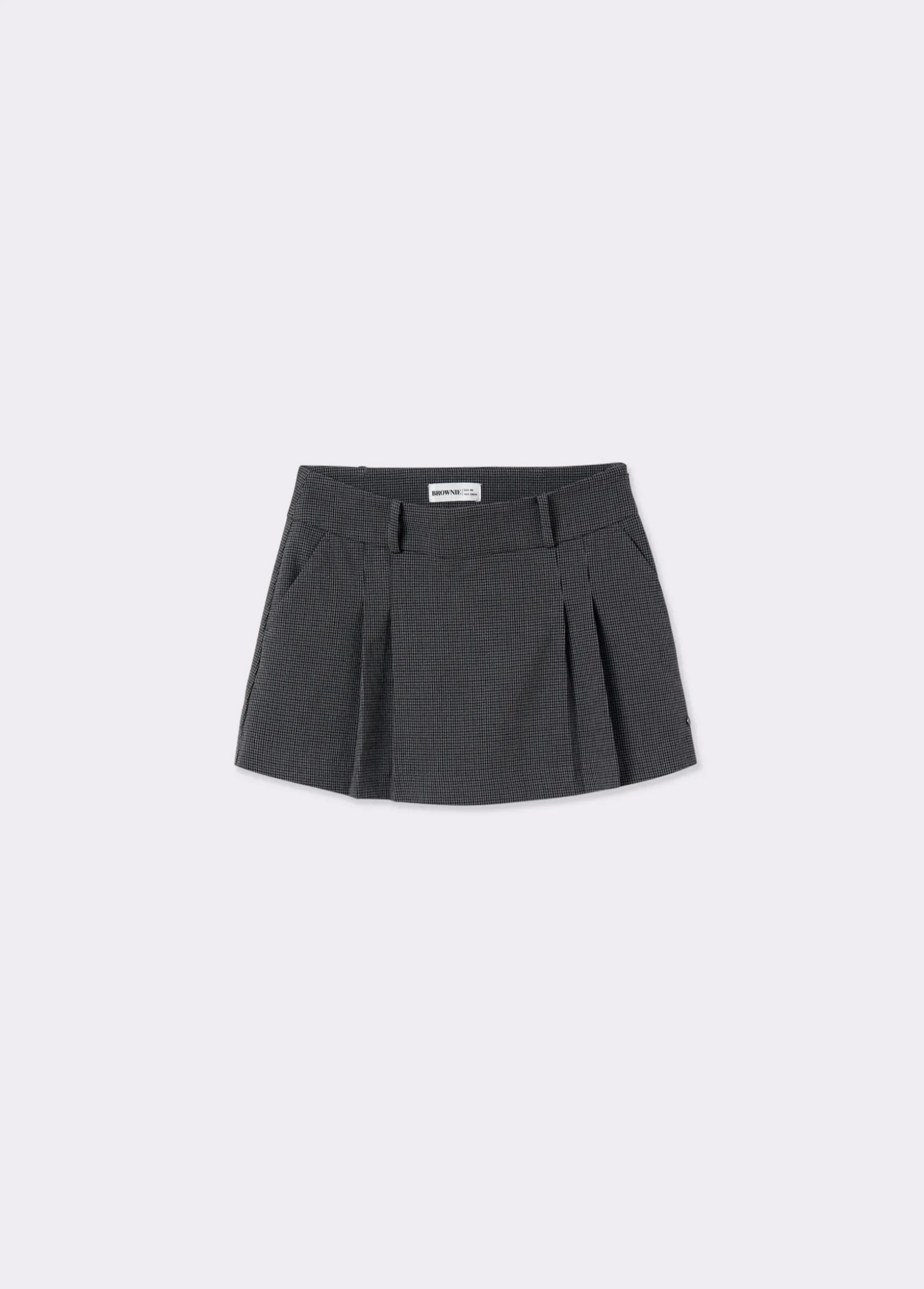 Falda corta de tablas con estampado de cuadritos.
