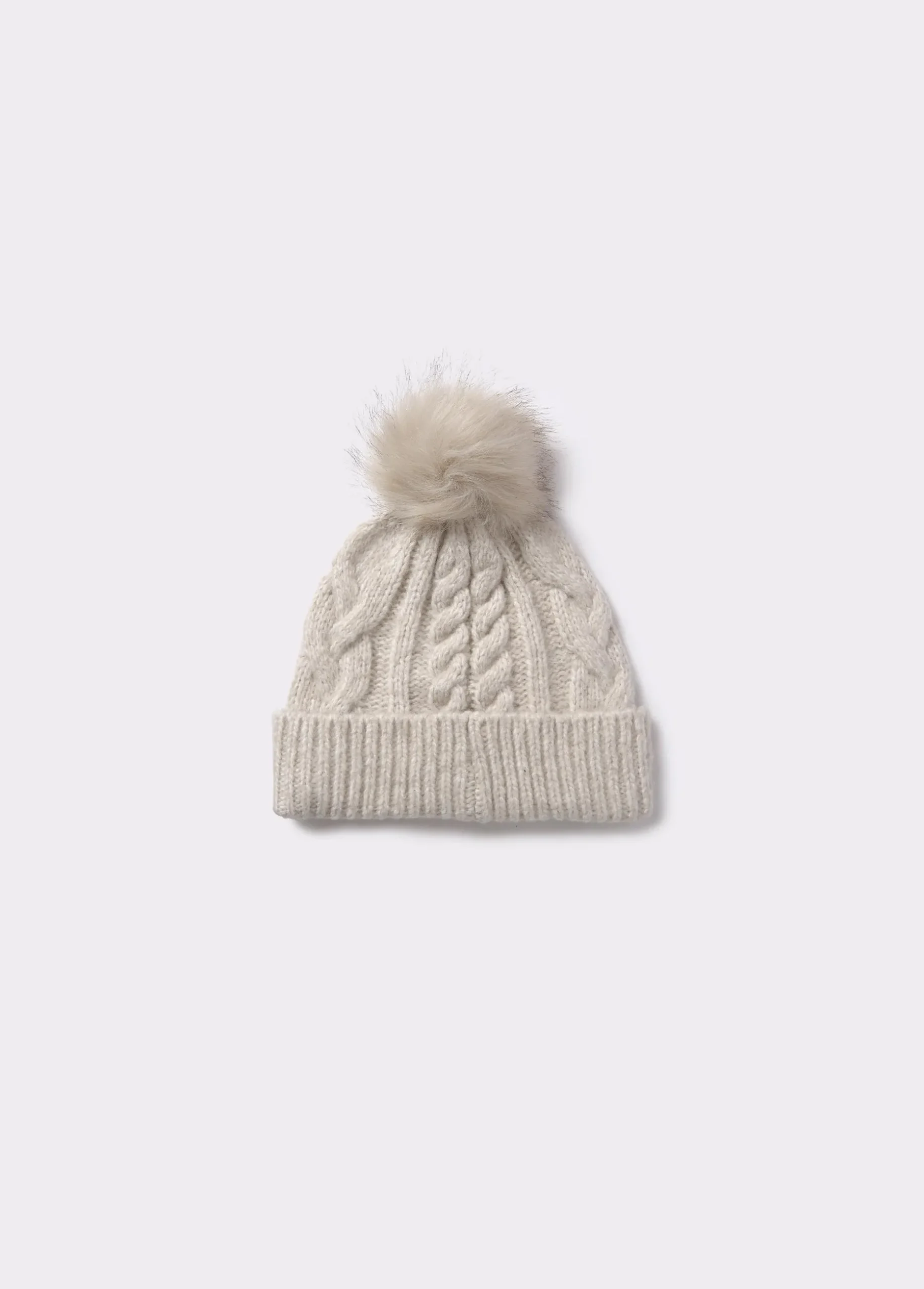 Gorro liso tenzado con bola de pelo sintético y acabado en vuelta.
