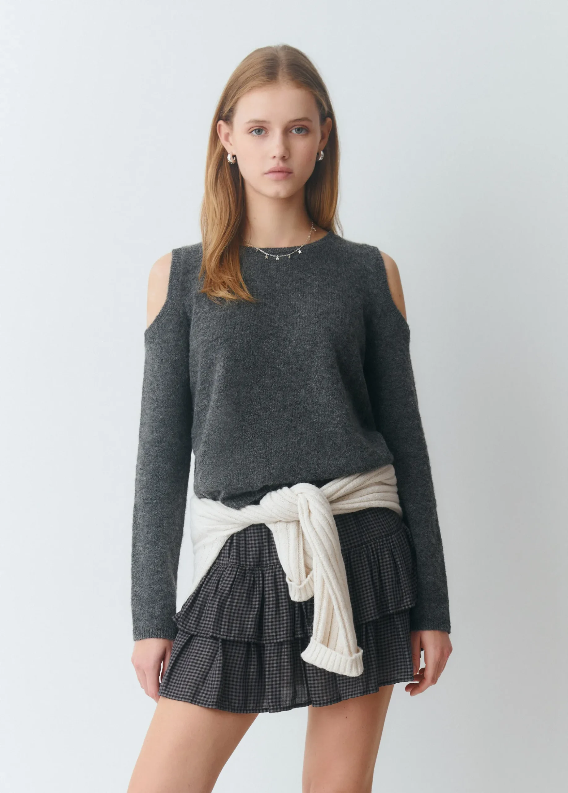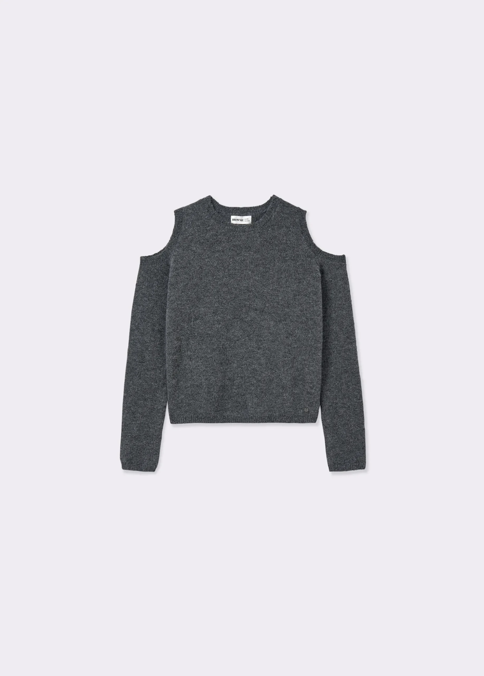 Jersey de manga larga y cuello redondo con hombros descubiertos.