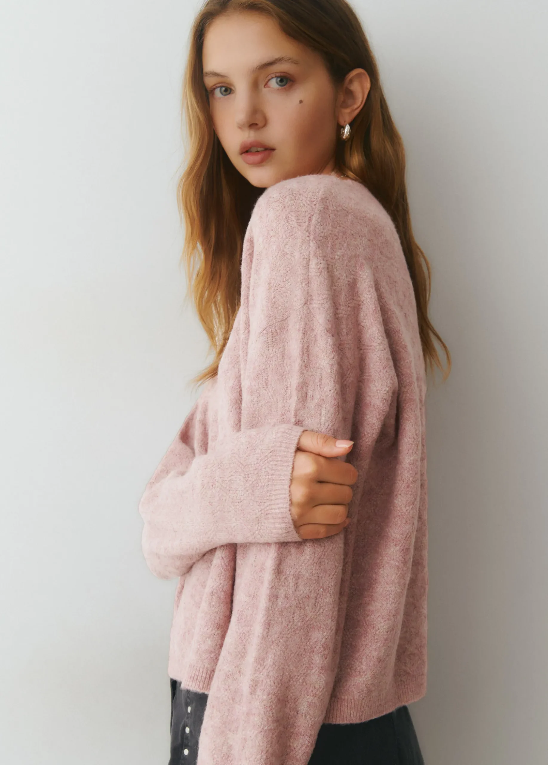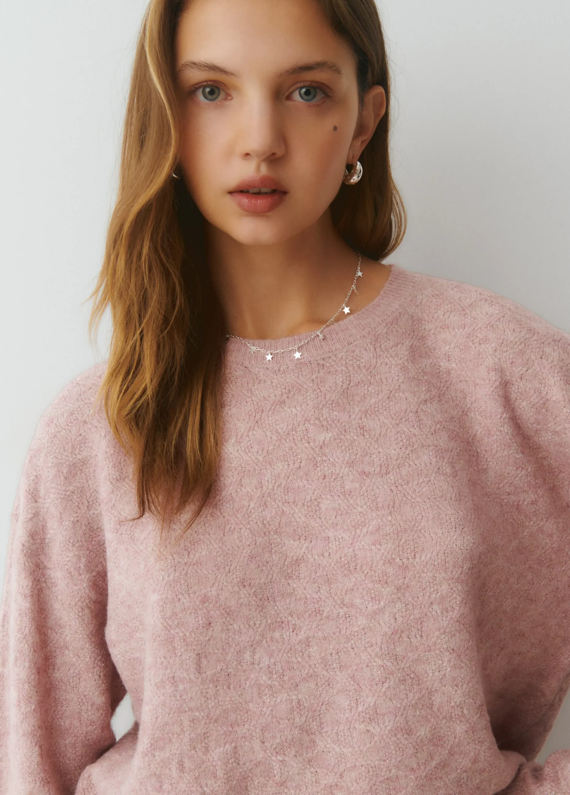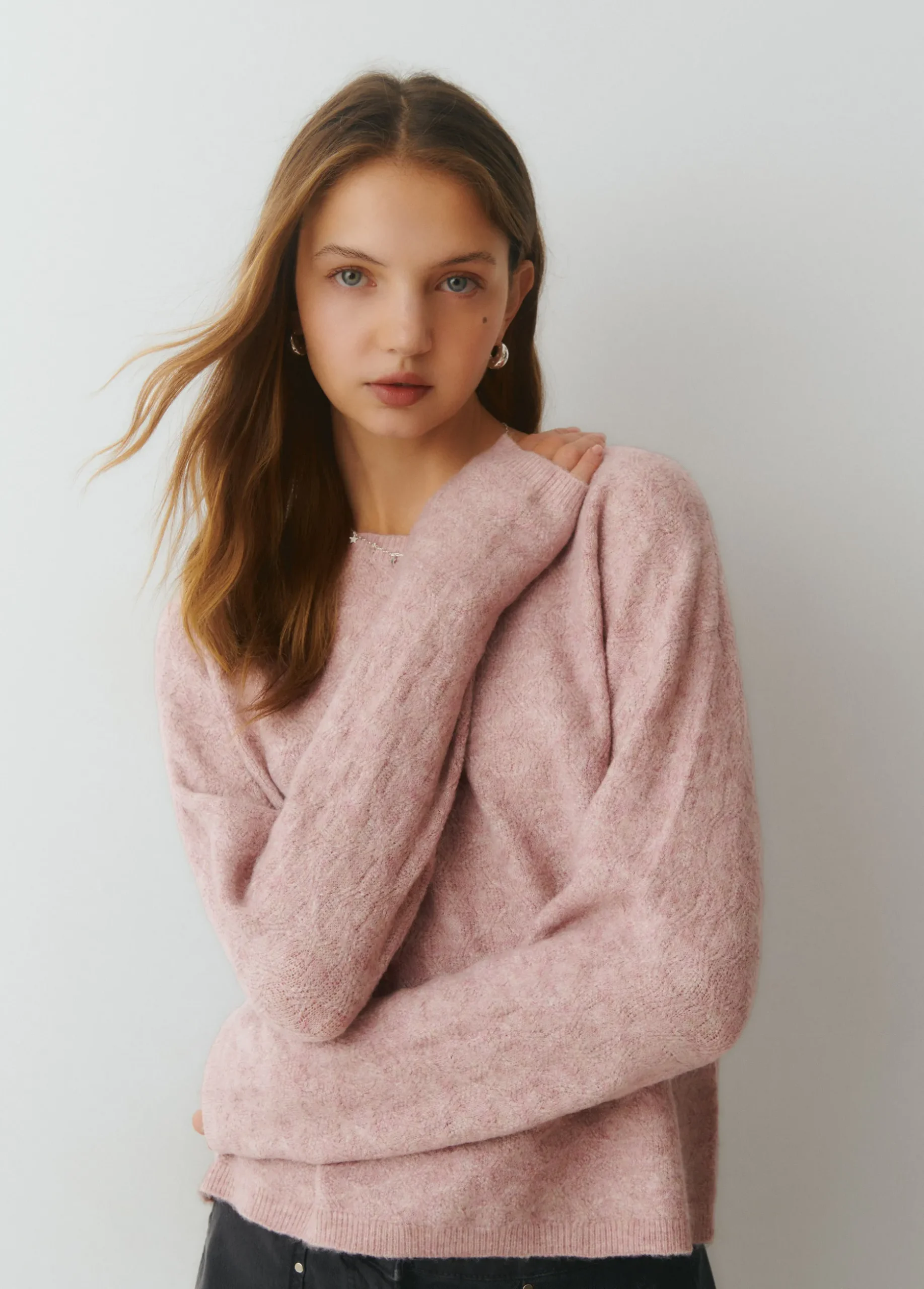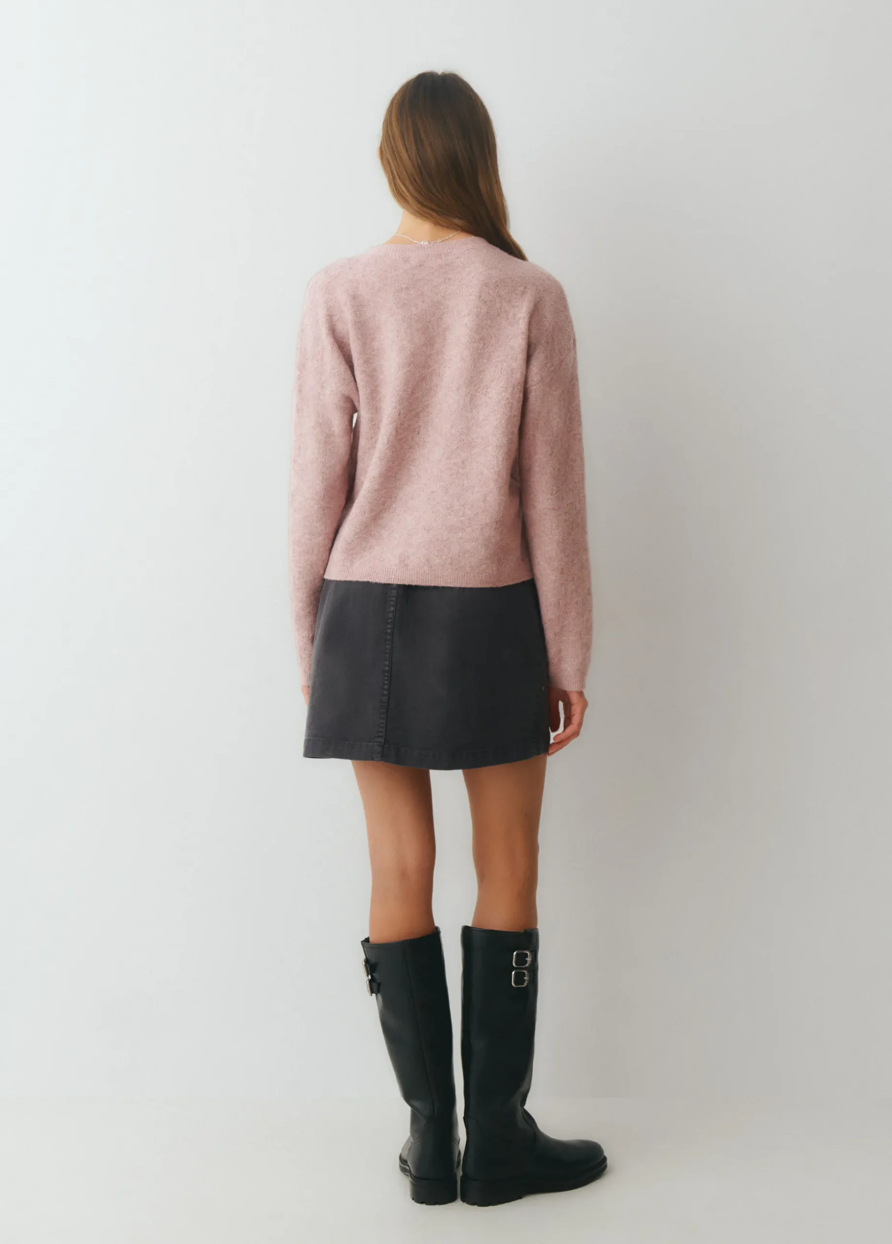 Jersey liso de punto de manga larga y cuello redondo.
