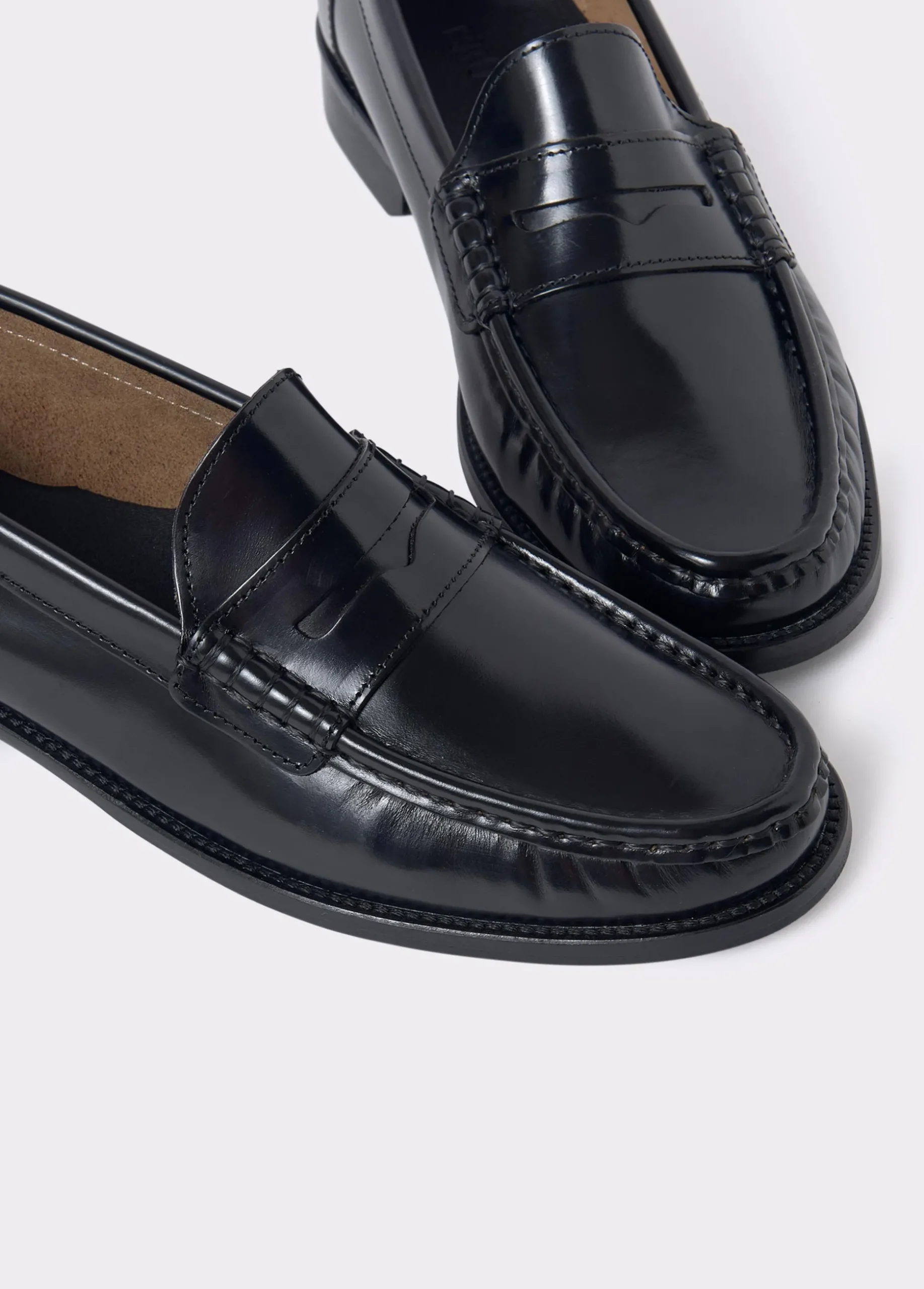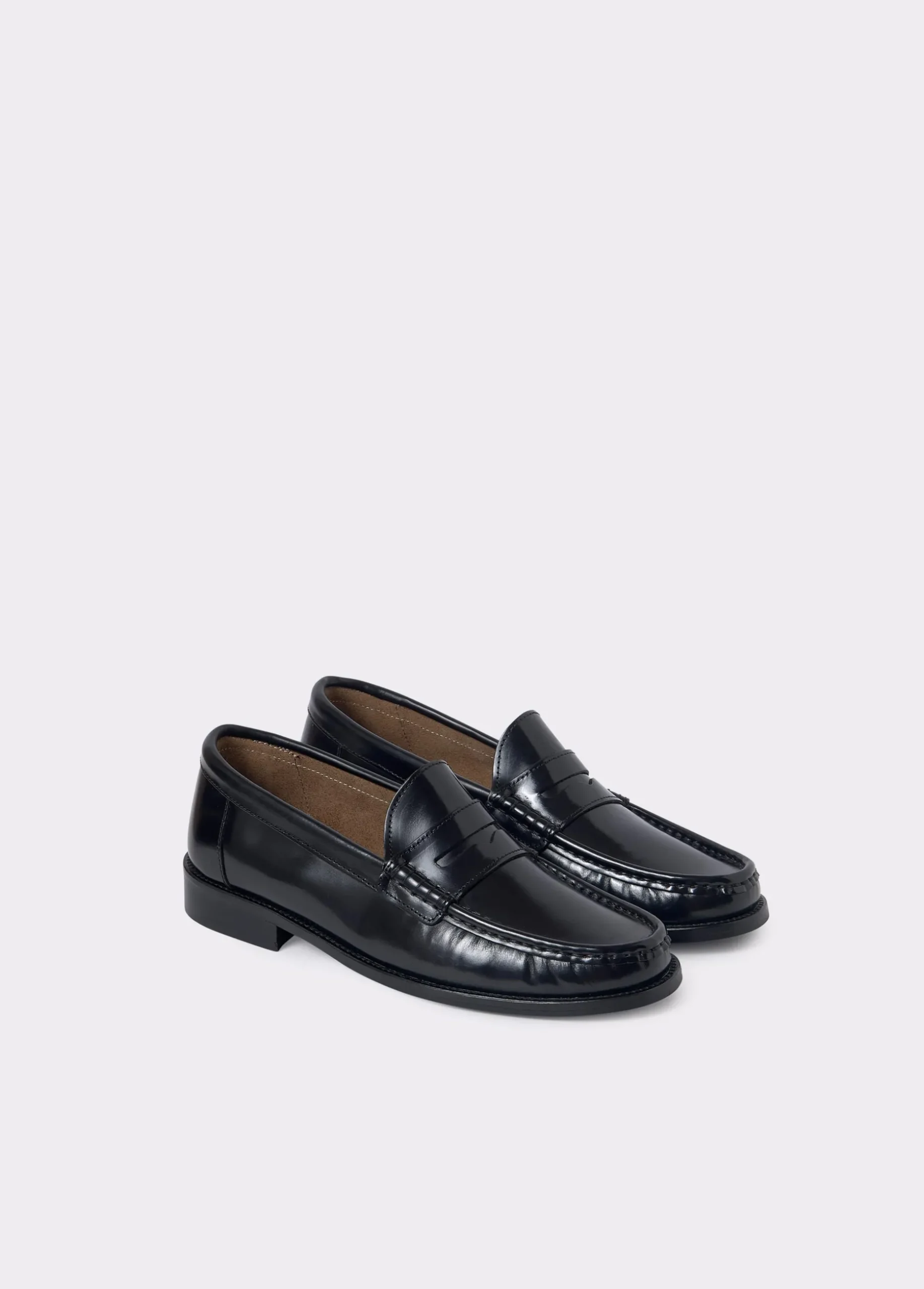 Mocasines de piel en color negro con puntera redonda. Alto de tacón: 2,5 cm.