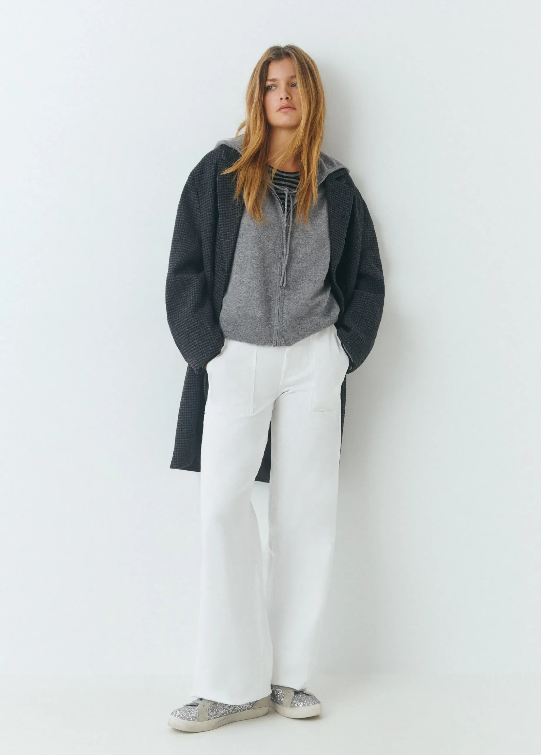 Pantalón culotte con bolsillos en la parte frontal. Cierre mediante cremallera y botón.