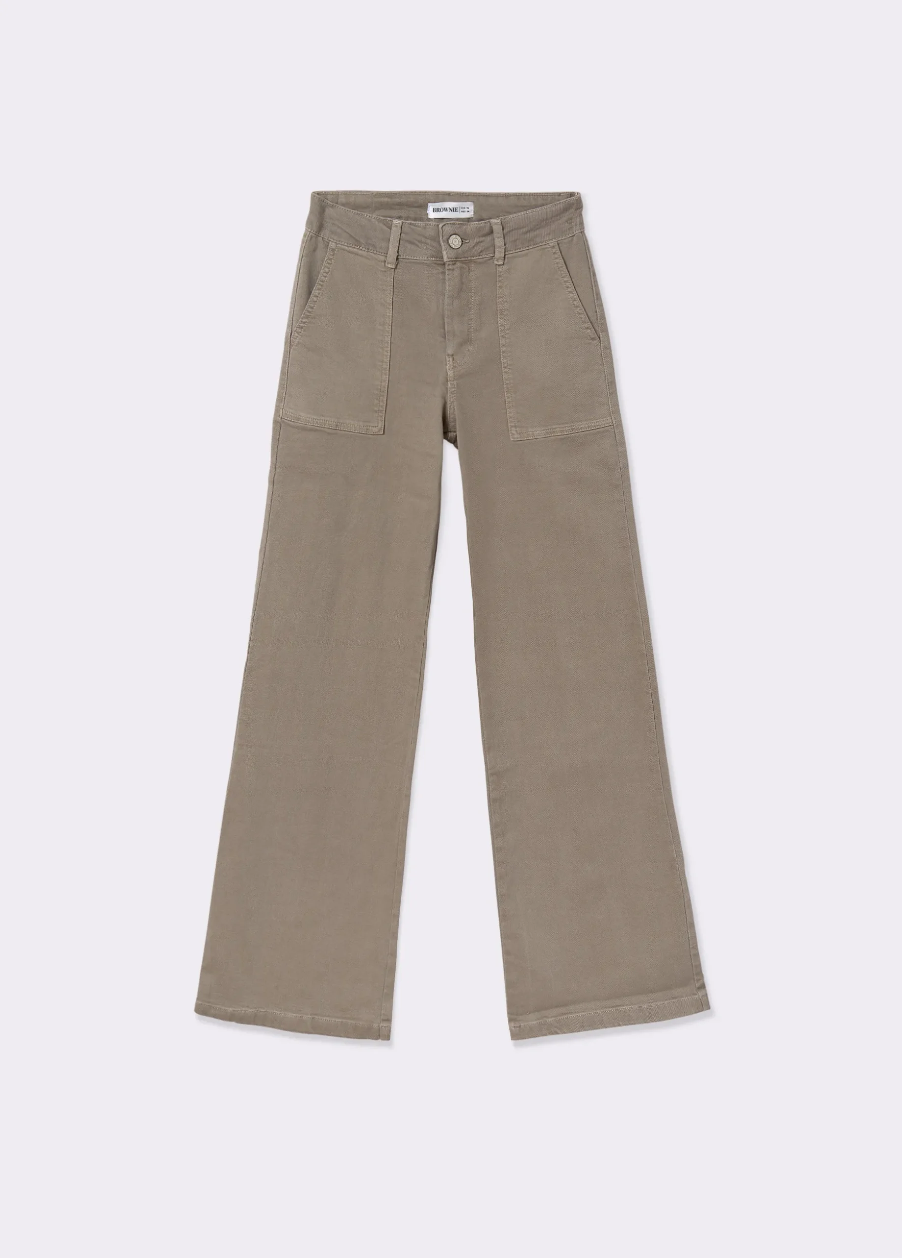 Pantalón culotte tiro medio con maxi bolsillos en la parte frontal. Cierre mediante cremallera y botón.