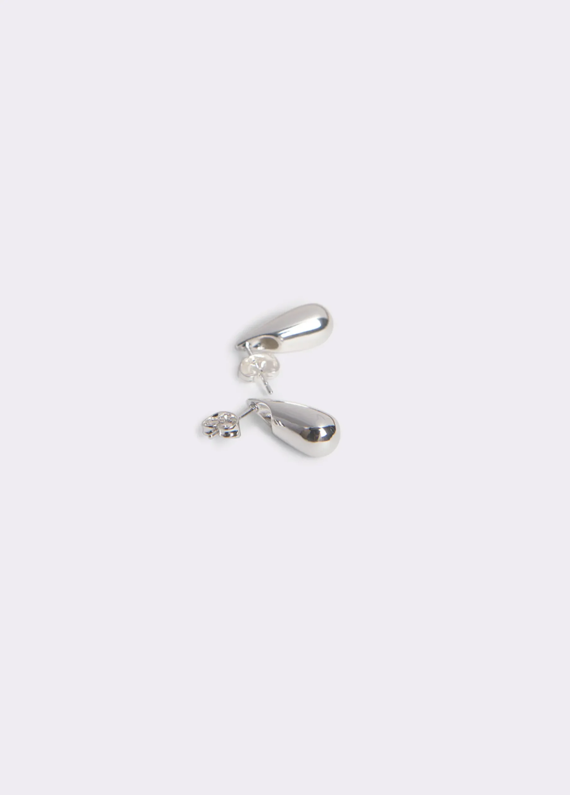 Pendientes plateados en forma de gota. Cierre de gancho.